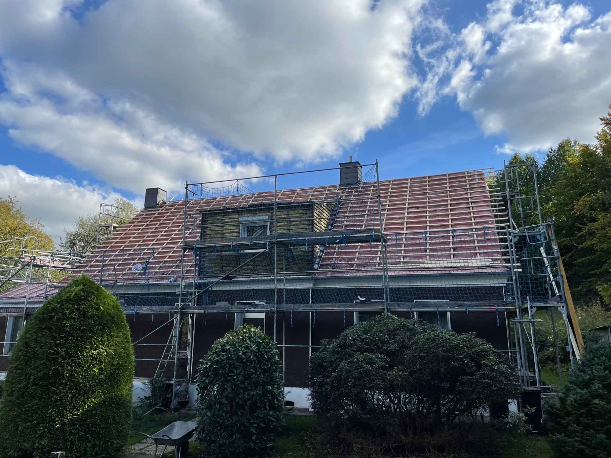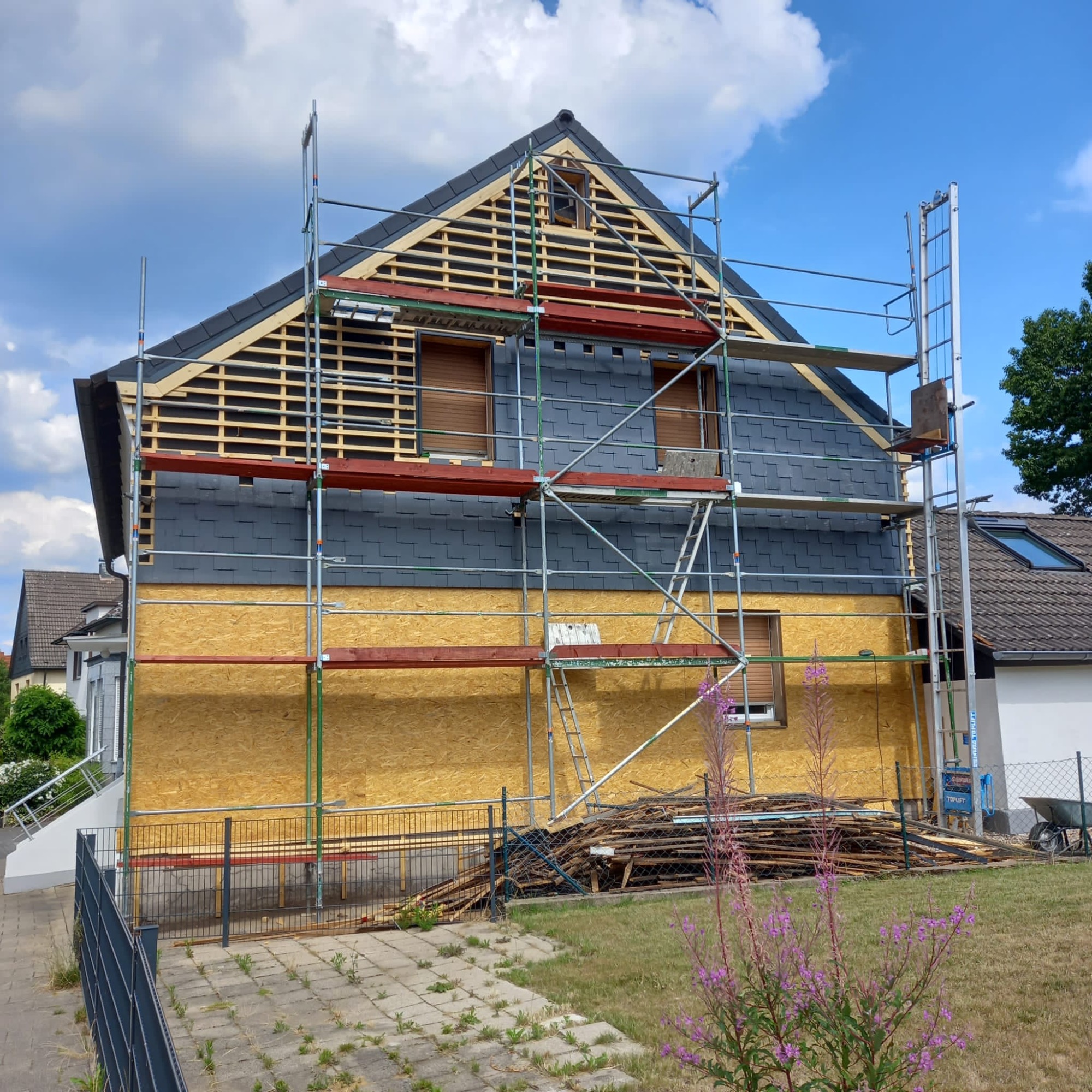 Steildächer zeichnen sich durch ihre klassische Form und hohe Widerstandsfähigkeit gegenüber Wind und Wetter aus. Sie bieten eine exzellente Entwässerung und schützen das Gebäude langfristig vor Feuchtigkeit und Schäden. Mit einer breiten Auswahl an Materialien und individuellen Gestaltungsmöglichkeiten schaffen wir ästhetische und funktionale Dachlösungen, die perfekt zu Ihrem Haus passen. Unsere handwerkliche Präzision sorgt für ein langlebiges Steildach, das sowohl optisch als auch technisch überzeugt